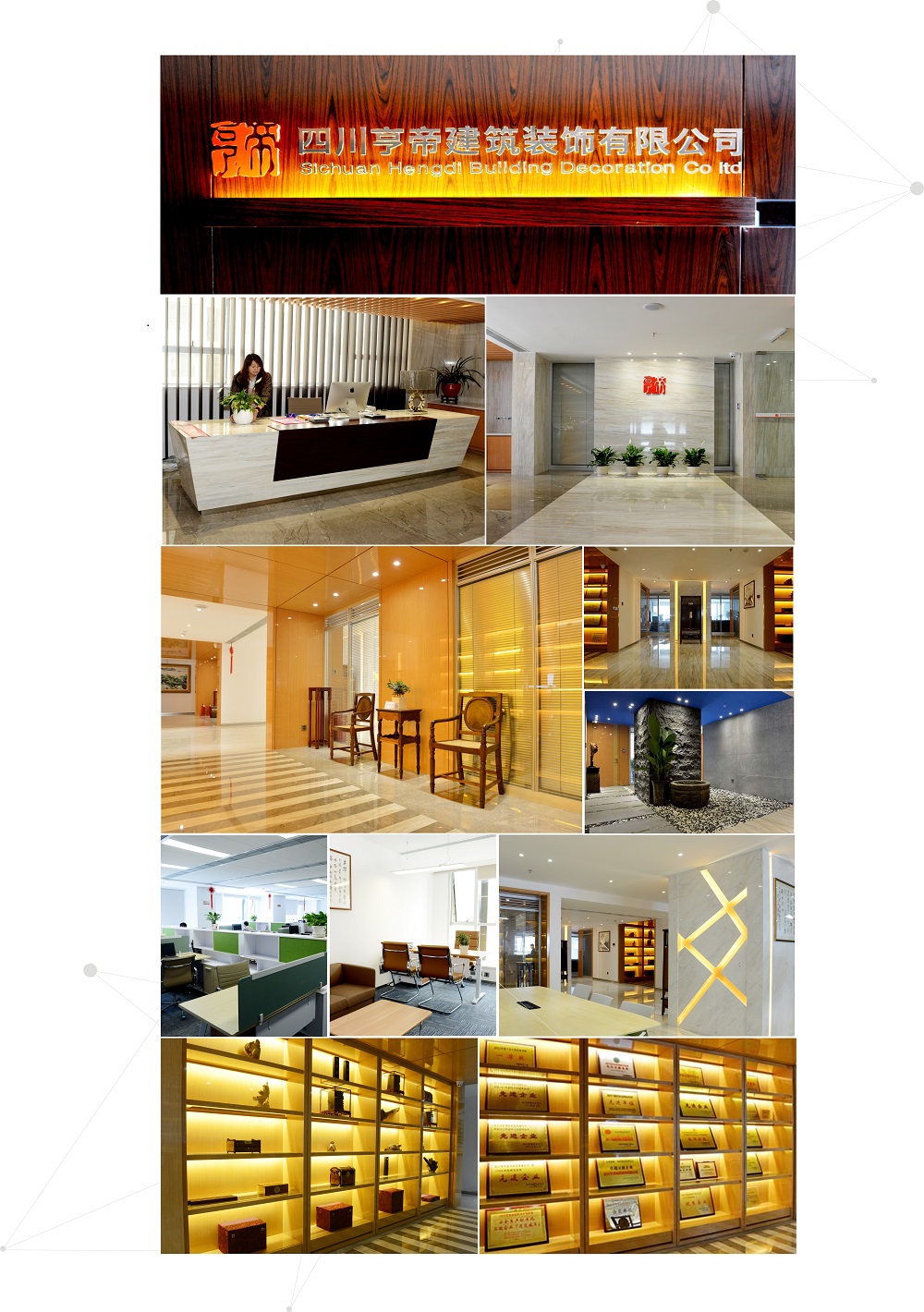 连续多年荣获“全国建筑工程装饰奖、四川省建筑业协会先进企业 、绵阳市建筑装饰协会优秀建筑装饰施工企业”奖,是四川最早成立并获得国家壹级装饰施工、国家甲级装饰设计双重资质的著名民营建筑装饰企业。